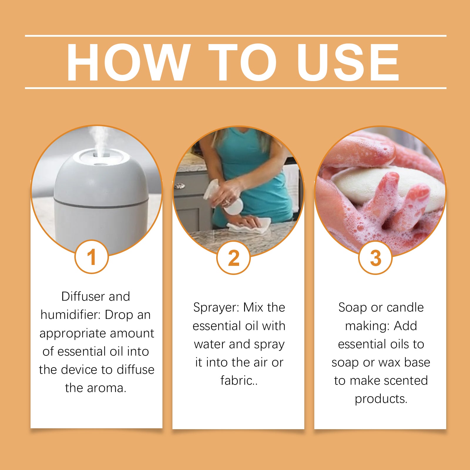 Our Fall aromatherapy essential oils contain cranberry Aromatherapy essential oils: cranberry seed oil, raspberry seed oil; Vanilla essential oil: vanilla extract, patchouli extract; Apple essential oil: apple extract, bergamot extract; Cedar essential oil: cedar oil, sandalwood extract; Cinnamon essential oil: cinnamon extract, sandalwood extract; Peppermint essential oil: cinnamon extract, peppermint oil. It can maintain a long-lasting warm fragrance and exude an autumn atmosphere. Its use is simple: diffuser and humidifier: Drop the right amount of essential oil into the device to spread the fragrance. Sprayer: Mix essential oils with water and spray on air or fabric. Soap or candle making: Add essential oils to soap or wax base to make scented products. It can also be used for diffusers, humidifiers, candles, soap and other purposes to enjoy the autumn atmosphere.